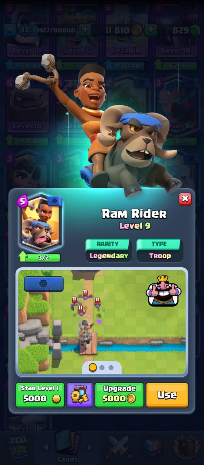 Upon release she was called the Hog rider rip off but all those slangs are only for committing offense. When it comes to actual use she’s actually pretty decent. She can target troops while her ram is charging at the tower. Not a sight I want to see while facing her.